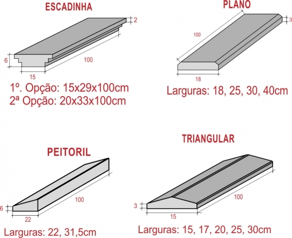 Larguras de 15 Cm, 17 Cm, 20 Cm, 25 Cm e 30 Cm.